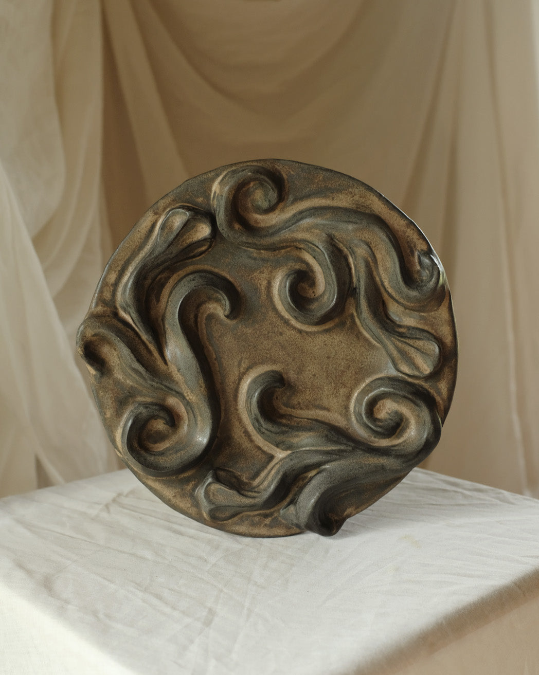 Second Sorted Ceramics - Floral Relief Dish - Brown 03
