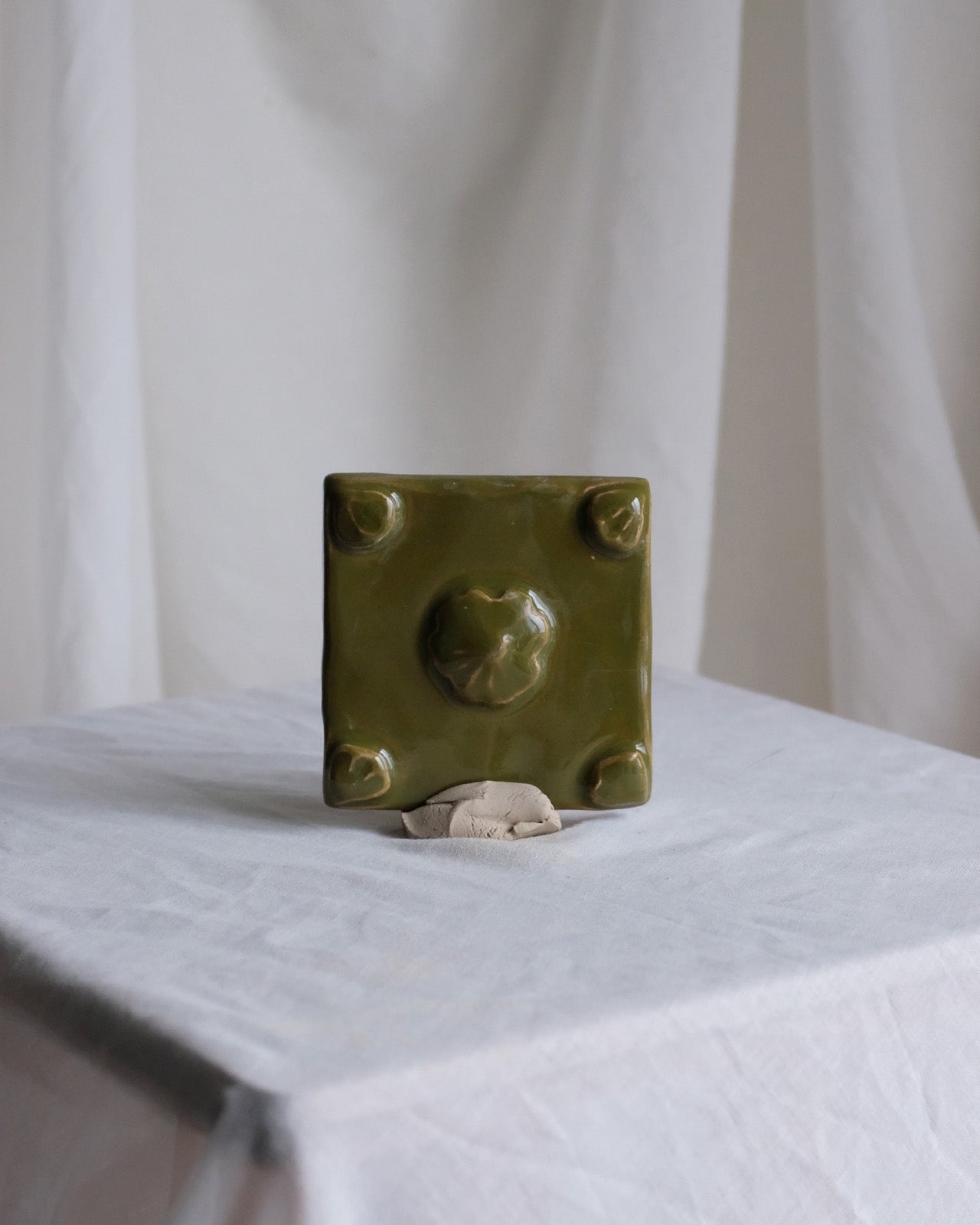 Handmade tiles made in stoneware clay, with flower shaped relief.